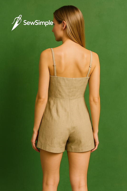 Linen Jumpsuit Sewing Pattern PDF - Strappy Shorts Romper - Summer Playsuit